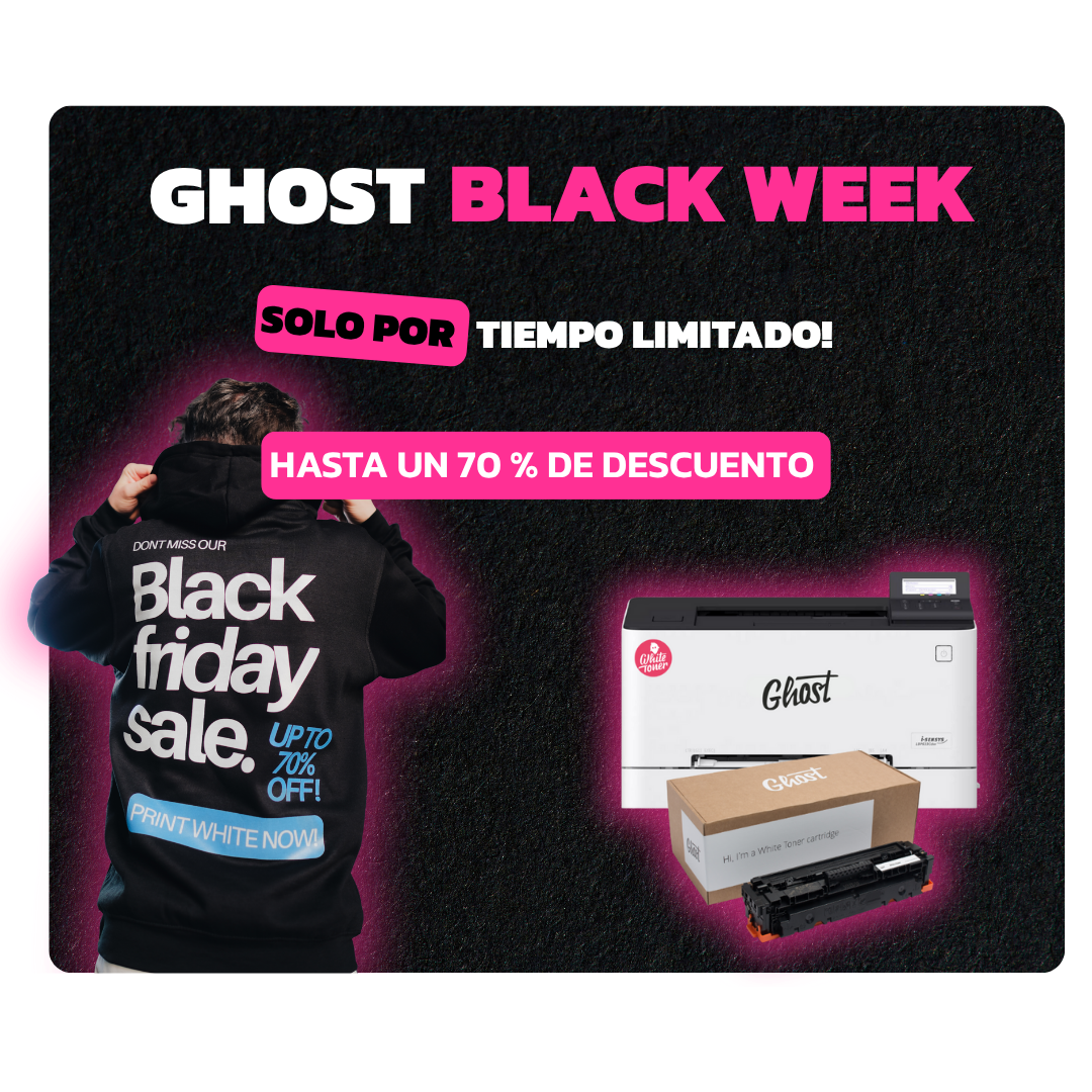 Ghost White Toner produce cartuchos de tóner blanco para muchas impresoras láser diferentes. De este modo podrás equipar fácilmente tu impresora láser con un tóner blanco de Ghost e imprimir en blanco inmediatamente. Todo lo que tienes que hacer es sustituir el cartucho negro de la impresora por el cartucho de tóner blanco para imprimir en blanco todo lo que aparece en la pantalla en negro. Ghost ofrece cartuchos de tóner blanco para muchas impresoras diferentes de HP, Canon, Lexmark y Samsung. Esto hace que las pequeñas tiradas y los artículos individuales con impresión en blanco sobre sustratos oscuros o de color, sean económicas y fáciles de producir. No hay necesidad de invertir en un sistema de impresión separado, ya que es fácil de imprimir con una impresora láser de oficina. Tampoco hay costos para clichés u otras preparaciones de impresión. Los diseños se pueden imprimir como de costumbre en el ordenador con la impresora láser, ahora también en un blanco cubridor.