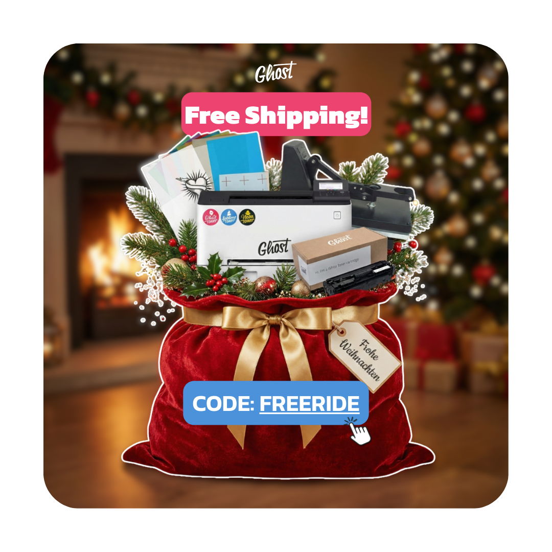 Are you still planning to take a closer look at white printing and its possibilities? If you don’t yet have a suitable laser printer, we recommend one of our bundles. The Big and Little Ghost Bundles each contain a white toner for white prints on paper, cardboard etc. With the Ghost toners you can also design other materials using the transfer printing process. You can find more information below. White toners offer exciting options in many design contexts, which bring out particularly noble or innovative results. White toners open up new possibilities for classical printing as well as modern printing techniques and can be used without much effort. As a specialist for white printing you will find many suggestions for the use of white toners and all necessary working, printing and transfer materials for successful white printing.