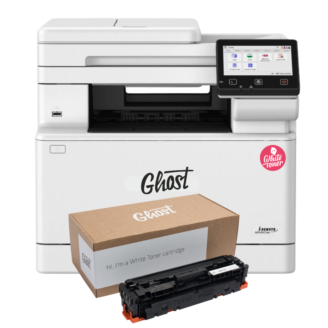 Wir setzen auf hochwertige, moderne Laserdrucker, da sie eine völlig neue Arbeitsweise ermöglichen und aufgrund ihres guten Rufs im oberen Segment des Marktes platziert sind. In unserem Little Ghost Multifunktionsdrucker mit weißem Toner ist der Canon I-Sensys MF657cdw enthalten, der bis zu 21 Blatt pro Minute druckt. Dazu kommt eine ausführliche Anleitung, die dir alle Details zur Benutzung des Druckers erklärt. Little Ghost wird durch die Toner komplettiert – einen schwarzen Toner, unseren Ghost White Toner und farbige Starter Toner für Magenta, Gelb und Cyan.